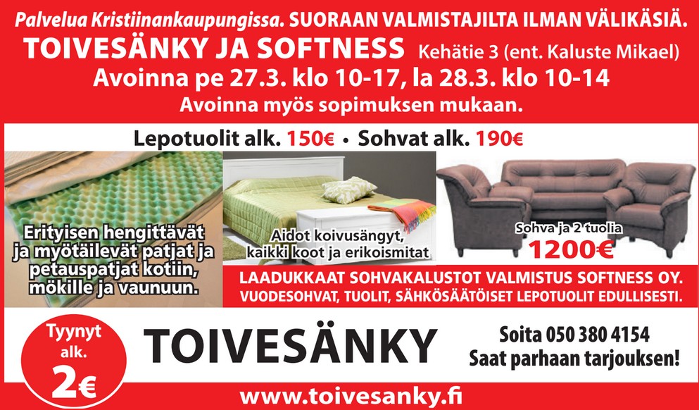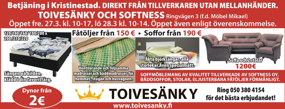 Betjäning också på svenska. Vänligen, ring 050 3804154.